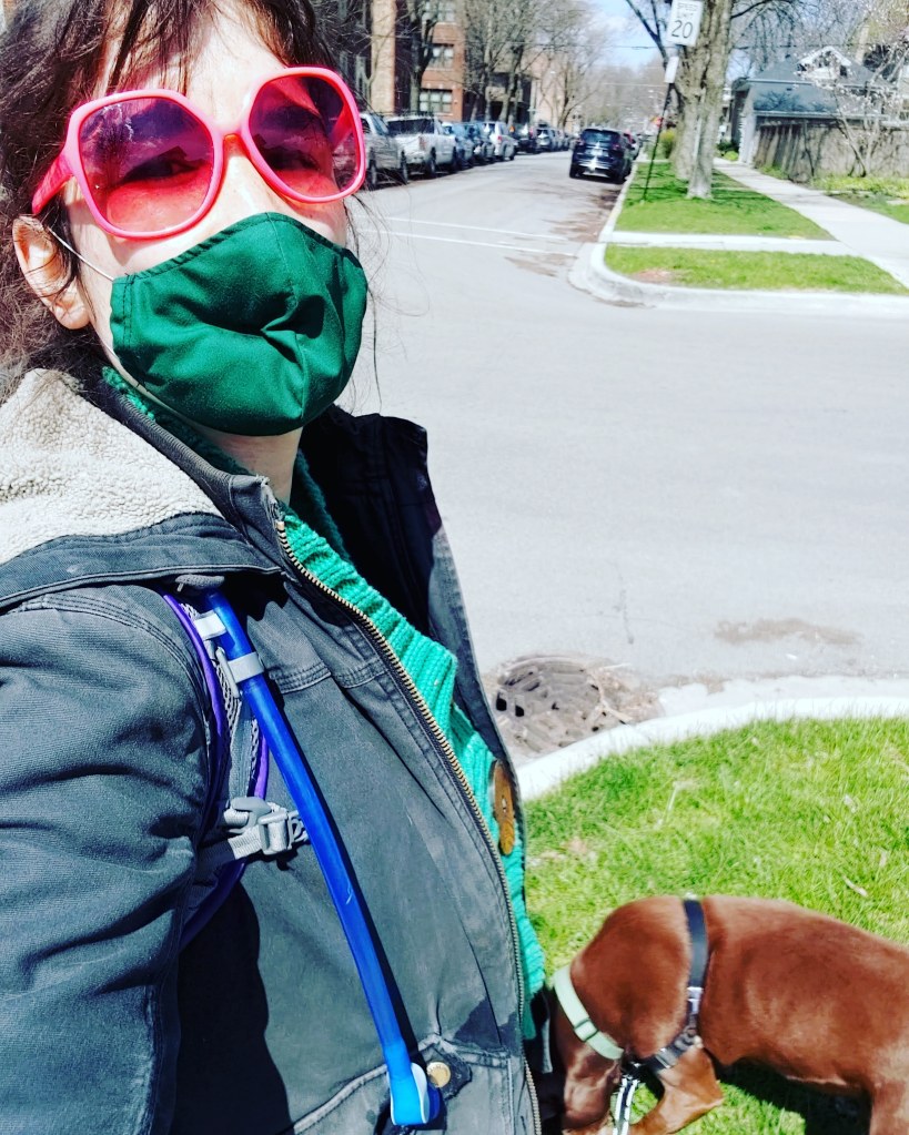 Okay, it happened right next to what I knew was his house. But can you imagine? I was just blasting “Hallogallo” by Neu! on my JBL Clip while walking this excellent pup you see here, and this old, feeble man (who is also a criminal ex-governor who was just released from prison early by our currently sitting Moron-in-Chief) just goes ever so slowly by staring at me and this wild music I was blasting for a solid twenty seconds before I realized who he was. And you know what? I do not know what struck him more: these very dank huge pink sunglasses I got at a thrift store; the fact that I am an otherwise attractive younger woman who wears shapeless and formless clothing and no bra because she walks dogs in shitty weather a lot of the time, yet still moves through space like it absolutely belongs to her; or that I was playing the absolute perfect music for quests of endurance and transcendance, which this extremely out of shape old crook jogging definitely is. The whole episode was completely surreal, and now this excellent song will always remind me of the day me and Rod Blagojevich locked eyes in the wild and I was so fortunate to have these huge pink sunglasses on to protect my soul.