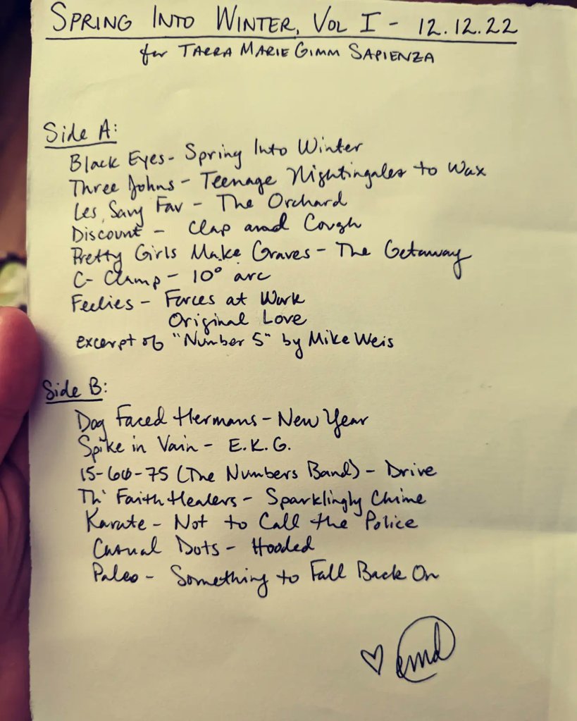 Spring Into Winter, Vol. I – 12.12.22 – for Tarra Marie Gimm Sapienza (my first punk friend, who changed my life in eighth grade)