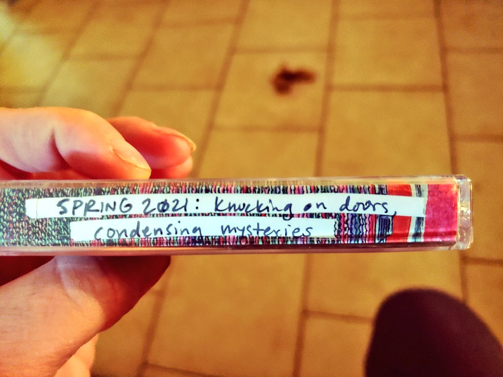 For once, and entirely unintentionally, I have actually only included songs which are all streaming on one platform, so I was able to make this into a playlist for anyone to hear without digitizing it this time. It is available on both Currents.FM and Apple Music. Might still digitize later, so you can hear which… Continue reading Spring 2021//knocking on doors, condensing mysteries